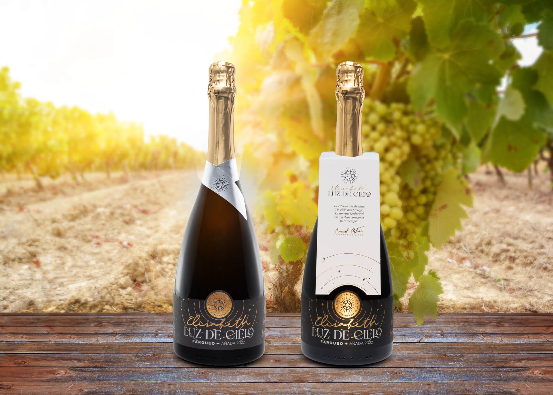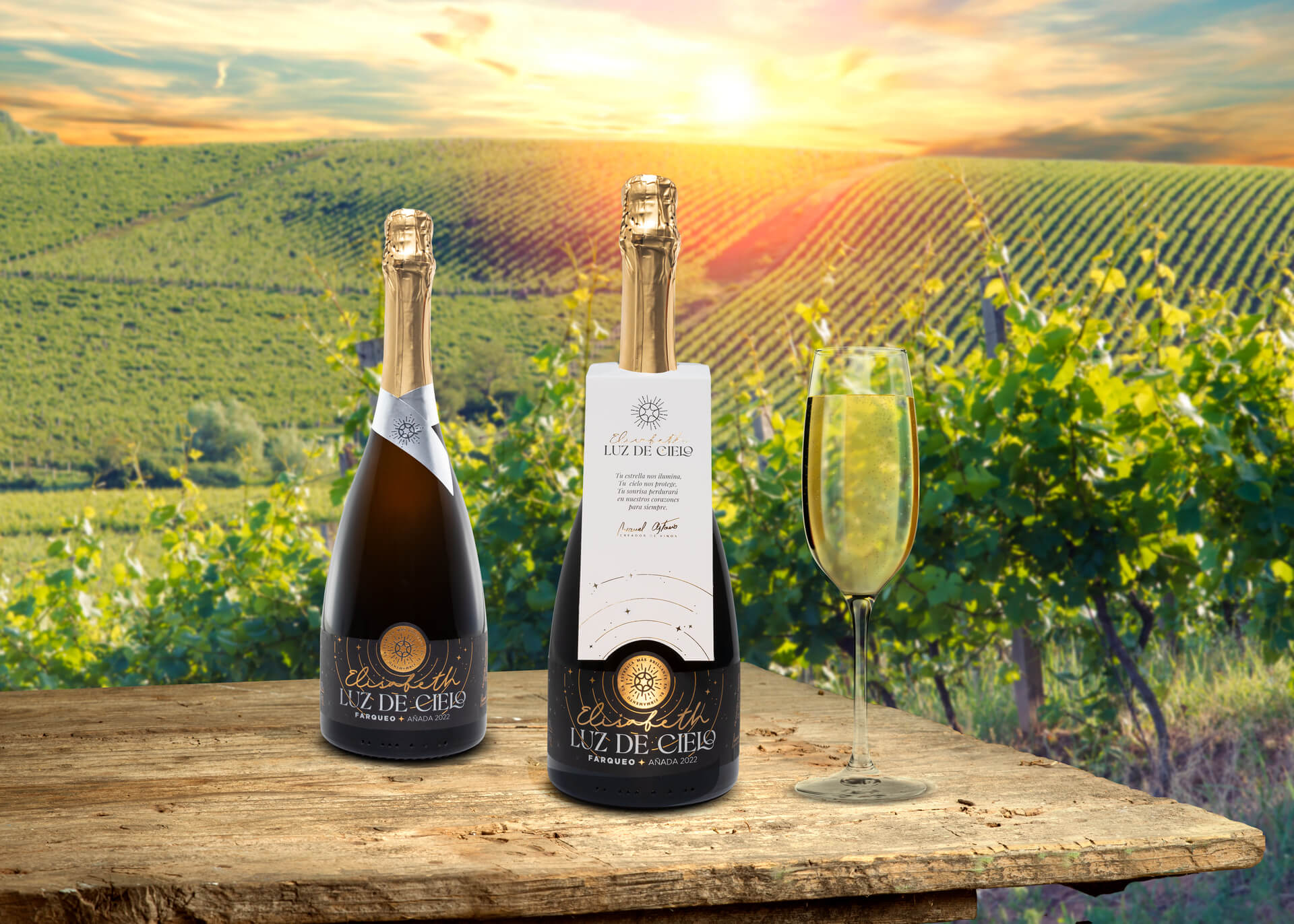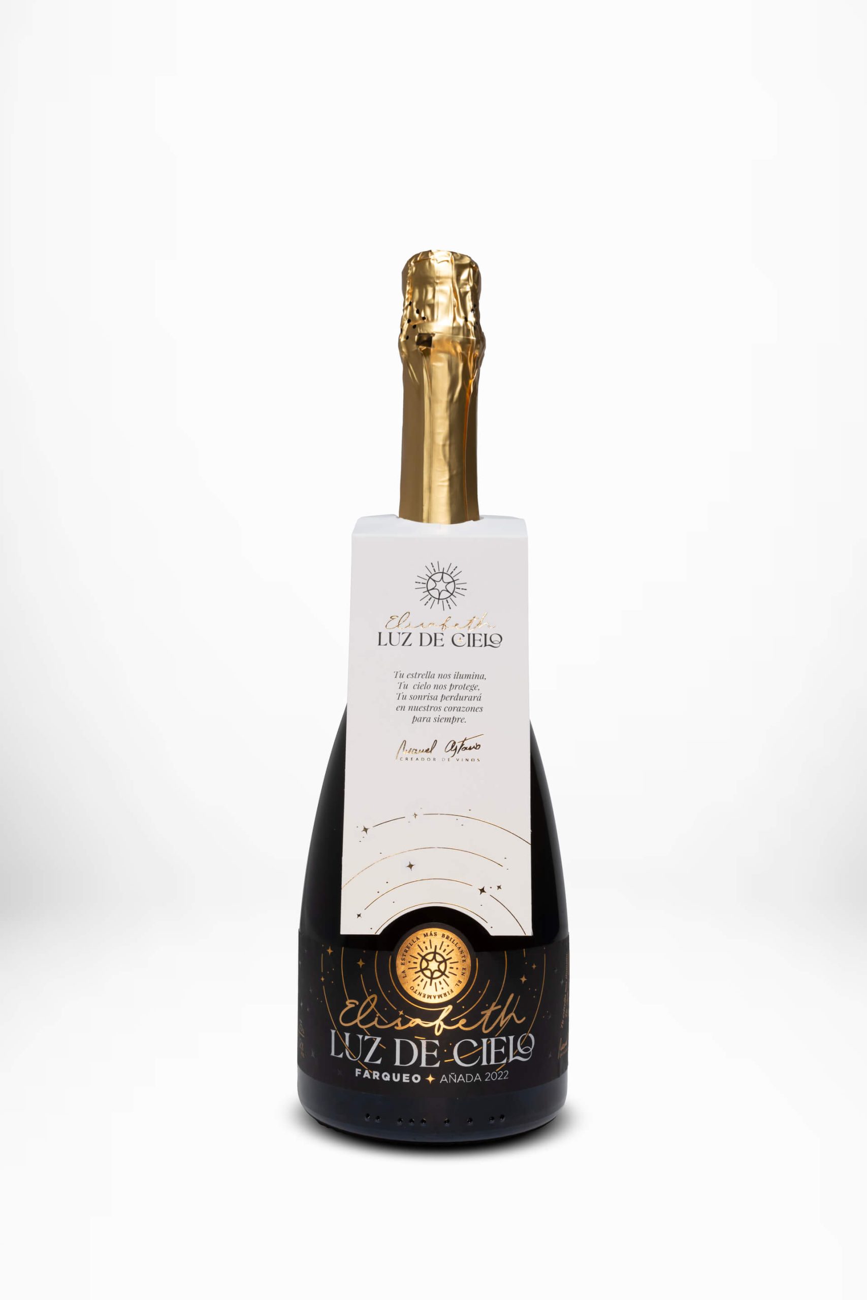 FASE VISUAL: Vino de color amarillo brillante con finas y delicadas burbujas.